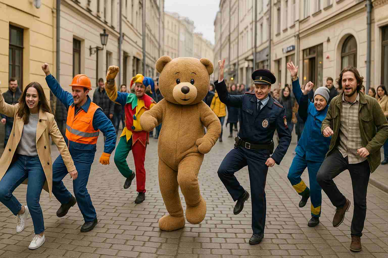 • Уличный танцевальный флешмоб — десятки участников, живая музыка и восторг публики.